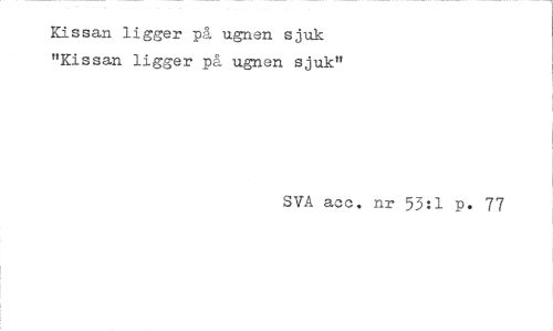 //// Kissan ligger på ugnen sjuk "Kissan ligger på ugnen sjuk" //// SVA acc. nr 53:1 p. 77 ////