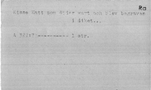 //// Ka //// Kisse Katt son i- i-r och bi ev be .-trav en //// i diket.., //// A --- 1 atr. ////