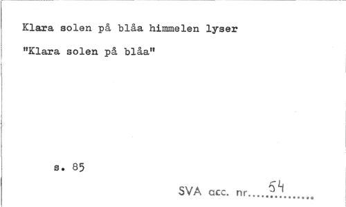//// Klara solen på "blåa himmelen lyser "Klara solen på blåa" //// s. 85 //// SVA acc. nr... ////