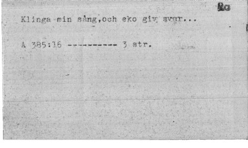 //// m //// Klinga min sång,och eko giv; svar... A» 385:16 ---5 str. //// -".'"''••' •>'• -:< i' ' ¦ ' ¦ ' - " * • • ' -.• tt- - '' , .. . "T . v - . '•• .¦•••:, ////