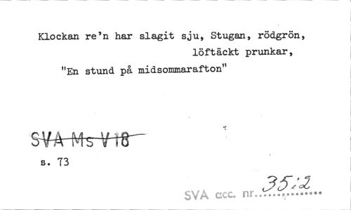 //// Klockan re'n har slagit sju, Stugan, rödgrön, //// löftäckt prunkar, "En stund på midsommarafton" //// S¥A Ms Vft- //// s. 73 //// 35J2 //// SVA ccc. ... ////