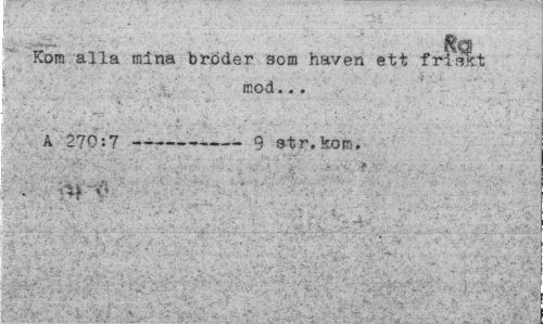 //// . • . * • , • ... • . ¦ //// Kora alla mina bröder som haven ett friskt //// mod... //// ygJt! Ji J^h: -1;;;v,:? /-f W&i ¦:Ä'V '; -V';;il.} //// A 270:7 —--- 9 str.kom. //// • ' ' ;' v ////
