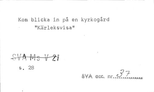 //// Kom blicka in på en kyrkogård "Kärleksvisa" //// s. 28 //// fiVA occ. nr^Ss^uZuuuMÄ ////