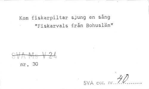 //// Kom fiskarpiltar sjung en sång "Fiskarvals från Bohuslän" //// ff^rMs V 2-4 //// nr. 30 //// SVA ccc. nr../.fr... ////