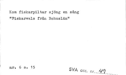 //// Kom fiskarpiltar sjöng en sång "Fiskarvals från Bohuslän" //// nr. 6 s. 15 c\/a //// ccc. nr...^ ////