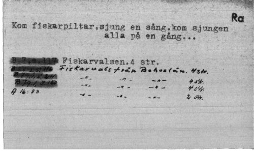 //// I, - '-fW //// Ro //// Kom fiskarpiltar,sjung en sång.kom sjungen //// alla på en gång... //// \'/,;l - yl k' — ¦ il i ii-l') //// i 4IIHMHP Fi.skarvalaen.4- str. //// I ////