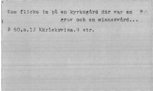 //// Kom flicka in på en kyrkogård där var en * j grav och en minnesvård... //// B 60,s.12 Kärleksvisa.9 str. ////