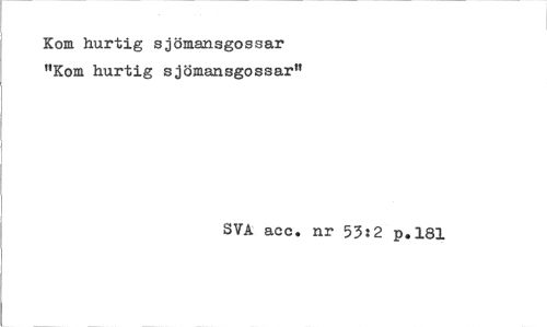 //// Kom. hurtig sjömansgossar "Kom hurtig sjömansgossar" //// SVA acc. nr 53s2 p.181 ////
