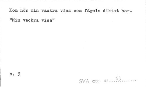 //// Kom hör min vackra visa som fågeln diktat har. "Min vackra visa" //// s. 3 //// SVA ccc. nr..A .*...'... ////