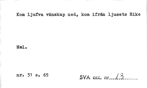 //// Kom ljufva vänskap ned, kom ifrån ljusets Eike MeiL. //// nr* 31 s* 65 SVA ccc. ////