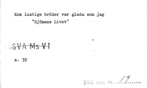 //// Kom lustige bröder var glada som jag "Sjömans Livet" //// s. 39 //// SVA ccc. nr. //// .//... ////