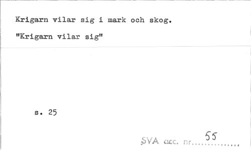 //// Krigarn vilar sig i mark och skog. "Krigarn vilar sig" //// s. 25 //// SVA acc. nr...??... ////
