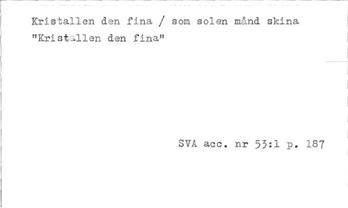 //// Kristallen den fina / som solen månd skina "Kristallen den fina" //// SVA acc. nr 53:1 p. 187 ////