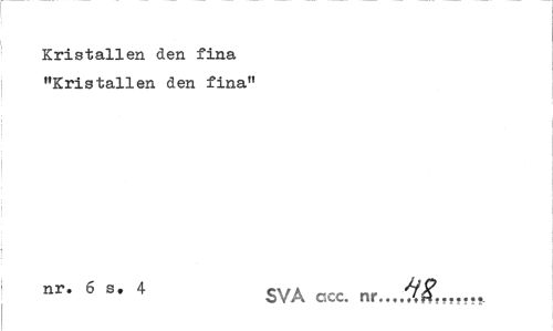 //// Kristallen den fina "Kristallen den fina" //// nr' 6 4 SVA ccc. nr ////