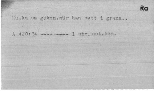 //// Ra //// Ku,ku sa göken,när han satt i gråna.. A 420:34 ---• 1 str. not.kom. ////