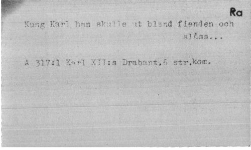 //// Ra //// Kur,g Kar":. Tian ak:ii le ut blsnd fienden och //// S1&33... //// A 317:1 Knrl XII:s Drabant.6 str.kom. ////