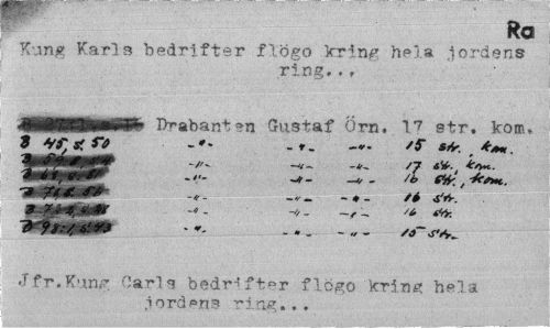 //// Ra //// Kung Karls bedrifter flögo kring hela jordens //// ring,., //// IMKlPi^ Drabanten Gustaf Örn, 17 str. kom, //// Tfri^fifilCMP -<- -v_ //// * x<Mr - -// - , ^ ^ - ... --- //// Jfr.Kung Carls bedrifter flögo kring hela jordens ring... ////