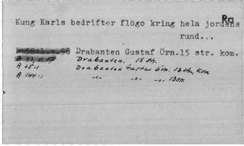//// i Kung Karls bedrifter flögo kring hela .io //// rund... //// dmtföaåmm* Drabanten Gustaf Örn. 15 str. kom. //// Q •'/ Dra. é * /t „ érH, /i&t, //// > //// : ////
