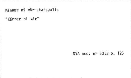 //// Känner ni vår statspolis "Känner ni vår" //// SVA acc. nr 53:3 p. 125 ////