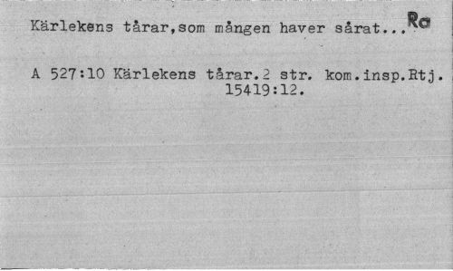 //// Kärlekens tårar,som mången haver sårat... //// A 527:10 Kärlekens tårar.2 str. kom.insp.Rtj. //// 15419:12. ////
