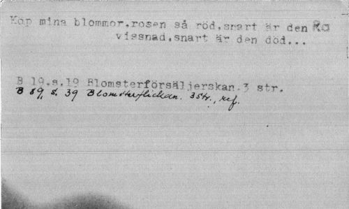 //// -lar mins blommor »ros»n så röd ?sr? rt ?r den v 1ssnad.snart är d en död... //// 8 1 o.s.io Blomsterförs'41 .ierskan- * sLr. //// fflÄti1'» ¦ -rit.* AU. . r ' ////
