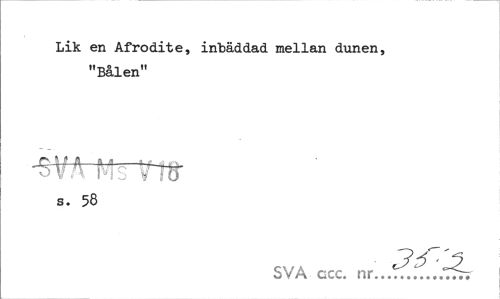//// Lik en Afrodite, inbäddad mellan dunen, "Bålen" //// -sv* r. VT» //// s. 58 //// SVA ccc. ////