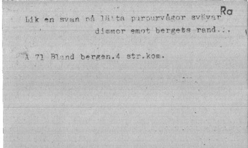 //// Ro //// LIV svan r>å lä1ta purpurvågor svävar dJmmcr emot bergets rand .. , //// . • < A 71 Bl^nd bergen.4 str,kom. //// i //// i ////