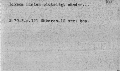 //// Xiksom himlen plötsligt sänder... B 70:3.s.121 Sökaren,10 str. kom. //// ¦ /1- ¦' ' * ' . ////