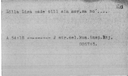 //// ua //// Lilla Lisa sade till aln mor,sa ho'.,.. //// A IB---2 str. mel. kom. insp.ftt.i. //// 3867:3. ////