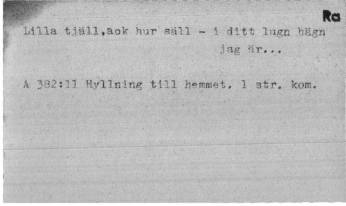//// Ro //// ! Lilla tr1äll,aok hur säll - i ditt lugn hä/m //// i' //// f .lag dr... //// A 332:11 Hyllning till hemmet, 1 str. kom. //// i ' ; : //// i- . - • . //// . . . //// ¦ //// i ////
