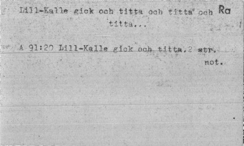 //// Lill-Kalle gick och titta och titta" och Ra A 91:20 Mil-Kalle .gick och. titta.2 «tr. ////