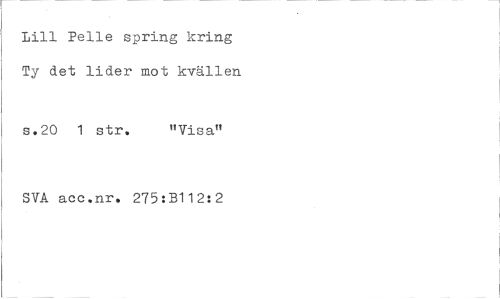 //// Lill Pelle spring kring Ty det lider mot kvällen //// s.20 1 str. "Visa" SVA acc.nr. 275:B112:2 ////