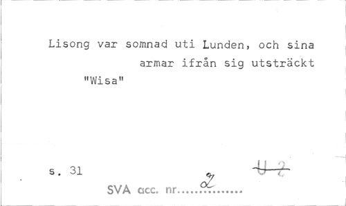 //// Lisong var somnad uti Lunden, och sina armar ifrån sig utsträckt //// "Wisa" //// s. 31 -SVA Gce. nr...9k... ////