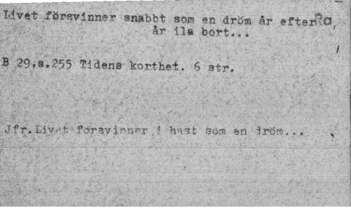 //// ' . V v> • ': ' //// Tdvet försvinner snabbt som en dröm år efter "O, //// år ila bort.,. //// '...•' ., ¦ 1 oi ' f: - - / •'• ? 1 //// B 29,3,255 Tidens korthet» 6 str. //// Jfr. Liv-^t 'för svinner ; hast som en iröre... s ////
