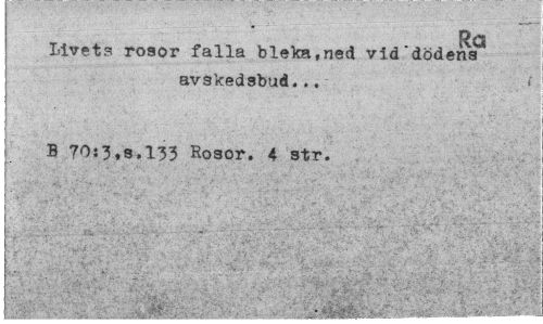 //// . , Ra //// Livets rosor falla bleka.ned vid dödens avskedsbud... //// B 70:3,s,133 Rosor. 4 str. ////