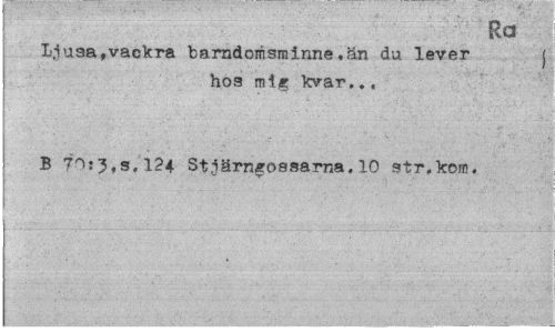 //// Ra //// Ljusa,vackra barndomsminne.än du lever j //// hos mig kvar... //// B 70:3,s.124 Stjärngossarna.10 str.kom. //// I ' ,•¦¦•'"' ////