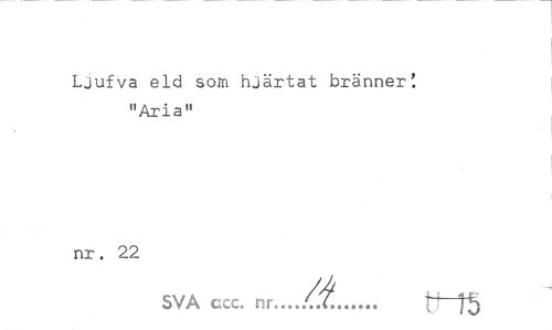 //// Ljufva eld som hjärtat bränner'. "Aria" //// nr. 22 //// SVA ccc. m.../Z... ti—TS ////