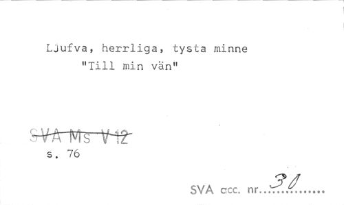 //// Ljufva, herrliga, tysta minne "Till min vän" //// s. 76 //// 3/J //// SVA ccc. nr...TT... ////