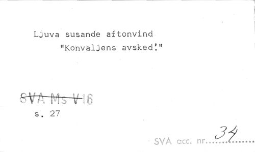 //// Ljuva susande aftonvind //// "Konvaljens avsked'." //// s. 27 //// J4> //// SVA ccc. nr. ////