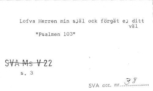 //// Lofva Herren min själ ock förgät ej ditt //// väl //// "Psalmen 103" //// SWrMs-¥-22 //// s. 3 //// 3? //// SVA ccc. nr...V... ////
