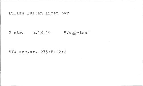 //// Lullan lullan litet bar 2 str. s.18-19 "Vaggvisa" SVA acc.nr. 275:B112:2 ////