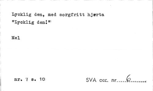 //// lycklig den, med sorgfritt hjcrta "Lycklig deni //// Mel //// nr. 7 s. 10 SVA ccc. nr... ////