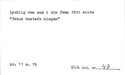 //// Lycklig den som i sin famn fått sluta "Prins Gustafs klagan" //// nr. 11 s. 1*9 CWA /,-7 //// SVÄ ccc. nr...Xr... ////