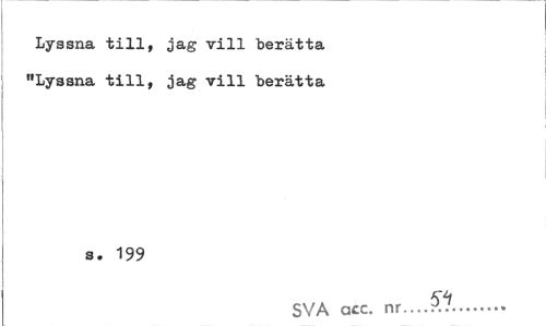 //// Lyssna till, jag vill berätta "Lyssna till, jag vill berätta //// s. 199 //// SVA cjcc. nr...*... ////