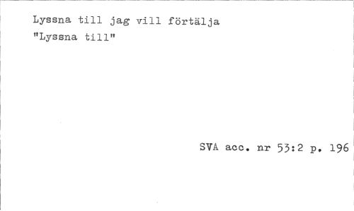 //// Lyssna till jag vill förtälja "Lyssna till» //// SVA acc. nr 55:2 p. 196 ////
