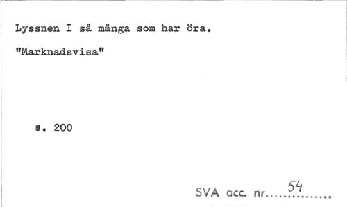 //// Lyssnen I så många som har öra. "Marknadsvisa" //// s. 200 //// SVA gcc. nr... ////