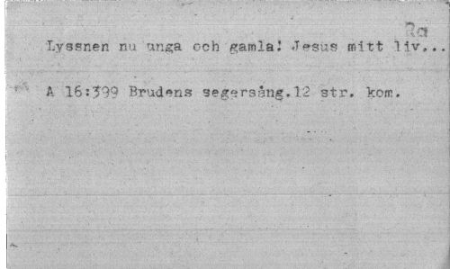 //// Lyssnen nu unga och gamla,' .Tesus mitt Tiv... A 16:599 Brudens segersång.12 str. kom. //// i IIHHHiliSi^B! ////