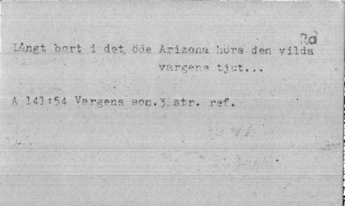 //// ' , ,fT". . • " • -'..'v,' ¦ - . - - //// ¦..¦•¦ • ••¦• ¦ _ ...- ¦:" //// •v..."... //// ¦Långt bort i 4st. öde Arizona hors den vilda //// vargens tjut... //// A 141:54 Vargens son.'5 str. ref. ////