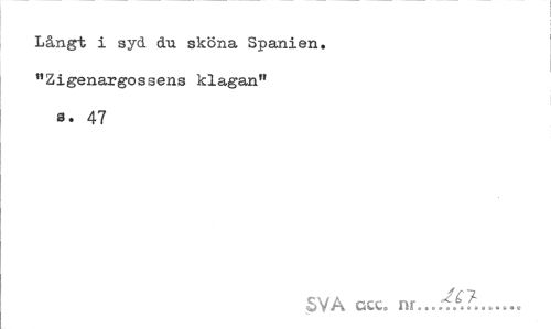 //// Långt i syd du sköna Spanien, "Zigenargossens klagan" //// a. 47 //// SVA cstc, nr... ... ////