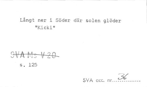//// Långt ner i Söder där solen glöder "Kicki" //// s. 125 //// SVA ccc. nr...frTf... ////